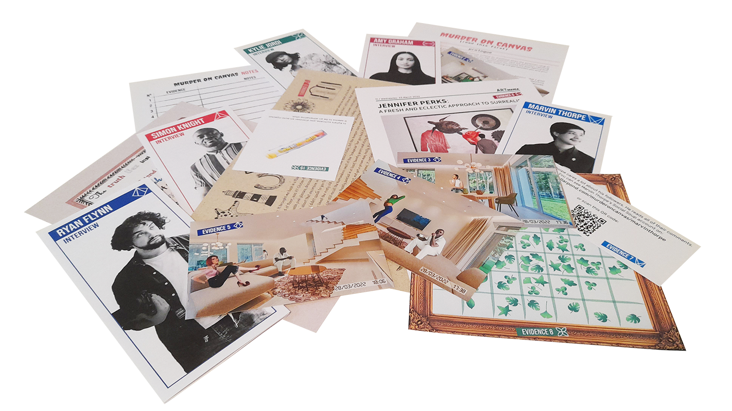 You will receive an envelope with the physical components used in the game. There are also digital elements in the game, such as the crime scene, puzzle solutions input page, hints and the final questionnaire, that are available on our website.